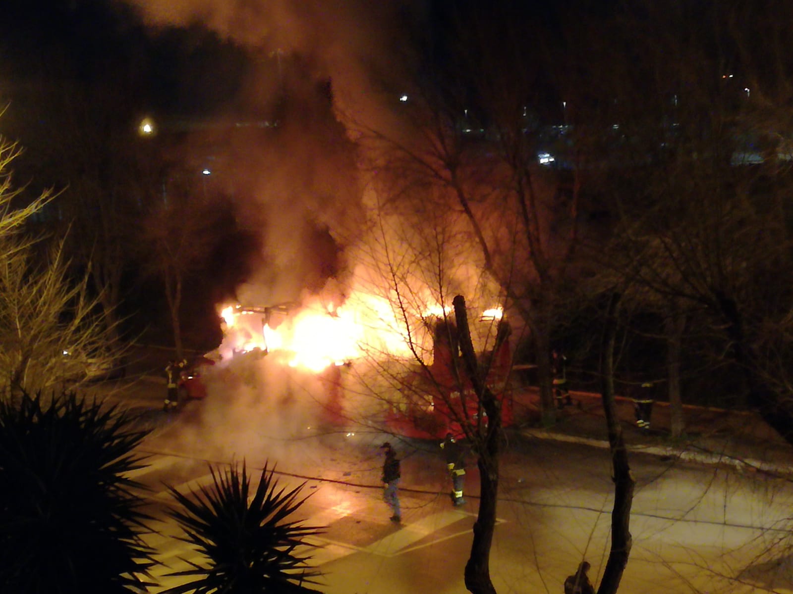 Foggia, pullman in fiamme in via Sant'Alfonso Maria de' Liguori
