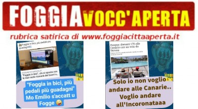 LA CITTA'. Intanto la città va avanti. Vabbè, certe volte anche un po' indietro. Mo hanno lanciato “Foggia in Bici”, una campagna per la mobilità a due ruote. Più pedali più guadagni. Mo Emilio s'accatt u Fogge. No seriamente. Tu vai in giro con la bici per lavoro o per svago e a fine mese fanno i conti e ti danno un buono sconto da usare nei negozi. Se in un mese che sei andato in giro per Foggia sei caduto in una buca o ti hanno investito puoi usare il buono anche alla para-farmacia per comprare il tutore per il ginocchio...