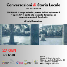 Il 27 gennaio 2026, in occasione del Giorno della Memoria, Luigi Iacomino, storico dell’aviazione in Capitanata, terrà un incontro dal titolo 60 PR/694. Il lungo volo che, partito dalla Capitanata il 4 aprile 1944, portò alla scoperta del campo di concentramento di Auschwitz.
