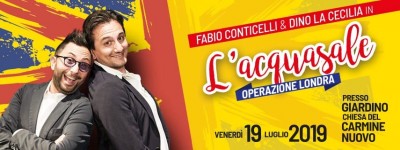 Dopo i successi ottenuti in inverno al Teatro Giordano e al Piccolo Teatro Fabio Conticelli e Dino La Cecilia tornano con una versione estiva de “L'Acquasale Operazione Londra”. Lo spettacolo andrà in scena nel giardino della Chiesa del Carmine Nuovo venerdì 19 luglio.