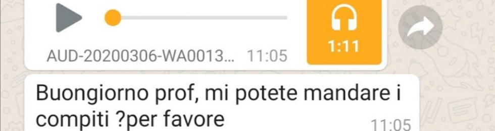 Il messaggio che non ti aspetti. E che, quasi, commuove: “prof, mi date i compiti? Per favore”. E non per la richiesta in sé, forse rara ma esplicita e diretta (nonché assolutamente reale). Anche, soprattutto, per un’esigenza di contatto che rivela un bisogno di normalità ad oggi, con la chiusura delle scuole, di fatto compromesso.