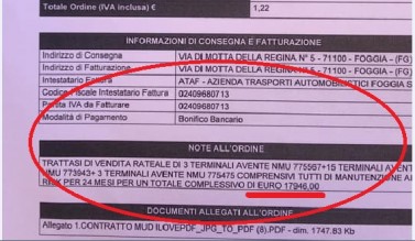 IL CONTRATTO. La denuncia, puntuale, trova in effetti riscontro negli atti. Con ordine n. 4661789 del 10 dicembre scorso, il presidente dell'azienda Stefano Torraco ha infatti disposto l'acquisto rateale in 24 mesi di 21 smartphone per un totale di 17.946 euro. Dai numeri identificativi presenti sul contratto è inoltre possibile risalire ai modelli acquistati: si tratta di tre Huawey Mate 20, 15 Iphone 8 e altri 3 Iphone di categoria superiore X o XR.