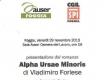 FORLESE. Alle 18 la presentazione del romanzo “Alpha Ursae Minoris” di Vladimiro Forlese, che sarà introdotto dal giornalista Enrico Ciccarelli. E' un ritorno a casa quello di Vladimiro Forlese che è andato via da Foggia nel lontano 1979. Vive a Trento e si occupa di scrittura. Tra le sue pubblicazioni “Costa fatica far girare il sole”, quaderno di poesia; “Non siamo ombre”, monologhi e poesie. Attualmente sta lavorando ad una biografia di Vincenzo Forlese, decorato con medaglia quale eroe della guerra partigiana nella ex Iugoslavia.