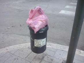 La differenza tra cestini portarifiuti e bidoni dell’immondizia è labile, a quanto pare. Almeno per qualche residente del centro di Foggia che continua imperterrito – all’incrocio tra via Zara e via Conte Appiano – a lasciare la busta d’immondizia e ‘’tappare’’ il cestino.