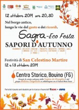 Sabato 12 ottobre a Bovino per ci sarà la la Sagra “Sapori d’ Autunno”, che da quest'anno sarà anche "ecofesta". Nel Borgo Antico del paese dei Monti Dauni si potranno degustare caldarroste, salsiccia e broccoli, minestra di ceci e fagioli, porchetta, pizze fritte, bruschetta contadina, formaggi, salumi e buon vino.