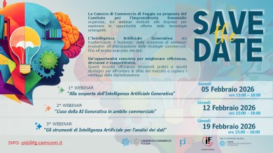 GLI INCONTRI. L’Intelligenza Artificiale Generativa sta ridefinendo i confini del business: dalla creazione automatizzata di contenuti di marketing all'ottimizzazione delle vendite, fino all'analisi avanzata dei dati per decisioni più rapide e sicure. Un ciclo di incontri gratuito, che si terrà online nei giorni 5, 12 e 19 febbraio 2026, dalle 15:00 alle 18:00, e che analizzerà l’impatto dell’IA nei processi aziendali, dal marketing all'analisi dei dati.