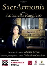Le canzoni sacre più note reinterpretate da una delle cantanti più talentuose della scena italiana, l’ottima Antonella Ruggiero. È il regalo che l’Amministrazione comunale fa alla cittadinanza foggiana, tra gli eventi più interessanti inseriti in questo cartellone natalizio: venerdì 22 dicembre, alle ore 20, nella Cattedrale di Foggia, di scena il concerto “SacrArmonia”.