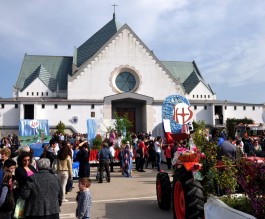 agricoli. I carri, allestiti per l’occasione, compiono tre giri rituali intorno al Santuario. Un