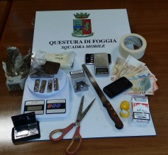 Nel prosieguo dell'operazione è stata inoltre rinvenuta una borsa con 245 grammi di marijuana, un bilancino di precisione, un paio di forbici, nastro adesivo e numerose bustine di plastica ovvero tutto materiale necessario per il confezionamento delle singole dosi. L'uomo è stato tratto in arresto e successivamente condotto presso la locale casa circondariale.