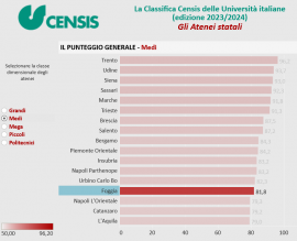 Classifica Censis: l'Università di Foggia si conferma tra i migliori atenei del Sud Italia