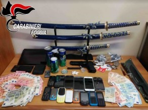 LE SCIABOLE. Nell’abitazione di Palumbo sono state, inoltre, trovate diverse armi bianche, mai denunciate all’Autorità di pubblica sicurezza e in particolare più sciabole giapponesi e alcuni grossi pugnali, oltre che una pistola ad aria compressa, dalla quale era stata rimossa la verniciatura rossa all’estremità della canna, in modo da sembrare identica ad un’arma vera, e per tale motivo l’uomo è stato deferito all’Autorità Giudiziaria anche per il reato di detenzione abusiva di armi.