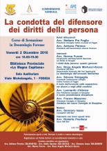 Il 2 dicembre 2016 nell’auditorium della Biblioteca Provinciale si terrà il Convegno dal titolo: “La condotta del difensore dei diritti della persona”, organizzato dall’Associazione Avvocati Matrimonialisti Italiani, sez. Distrettuale di Bari, dall’Associazione Daunia Forense e dall’Osservatorio sul diritto di famiglia.