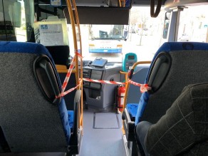 GLI AUTOBUS. Inoltre su alcuni autobus c'è un cartello che indica che i passeggeri devono salire e scendere usando solo la porta posteriore. Infine per evitare che l'autista venga in contatto con i passeggeri non è possibile sedersi nelle prime file e invece di usare l'obliteratrice i viaggiatori possono annullare il biglietto scrivendoci sopra la data e l'inizio del viaggio.