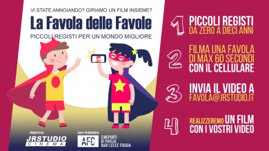 Un film partecipato con baby registi. Per rallegrare le giornate dei bambini, costretti - come tutti - a restare a casa. È l’idea promossa da JRSTUDIO Cinema che, con il patrocinio di Cineporti di Puglia, lancia “La favola delle favole”.