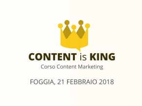 Il 21 febbraio si terrà a Foggia “Content is King” è il primo corso pratico sul Content Marketing organizzato in Puglia che ha l'obiettivo di fornire gli strumenti utili per ideare, produrre e distribuire contenuti eccezionali nel web.