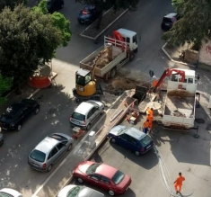 IL BLACKOUT. Dopo lo spavento e il blackout di ieri, in tarda serata, si lavora in via Benedetto Croce e strade limitrofe a Foggia. Proprio questa zona è stata il teatro di un corto circuito elettrico che ha provocato un blackout, intorno a mezzanotte, in diverse zone cittadine. Oltre al disagio per la mancanza della corrente elettrica (i vigili del fuoco hanno anche aiutato una signore rimasta intrappolata nell'ascensore di un palazzo della zona), anche lo spavento. I residenti hanno infatti avvertito vari "botti" sotto terra e i tombini hanno tremato nella zona. Sul posto il personale dell'Enel e i vigili del fuoco.