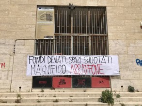 Uno striscione all’ingresso di quella che è stata ‘casa loro’ per due anni, dal maggio 2014 al 31 maggio 2016. Il Centro sociale occupato autogestito Scurìa torna a farsi sentire. E vedere, Lo fa con uno striscione eloquente issato all'ingresso dell'ex Gil, in via Da Zara: “Fondi deviati, spazi svuotati. Rettore arraffone”.