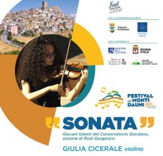 Nell’ambito della XIX edizione del Festival dei Monti Dauni, la rassegna itinerante diretta da Mara De Mutiis e ideata da Agostino Ruscillo, che da quasi due decenni porta la musica nei più bei luoghi della Capitanata, torna a fare tappa a Deliceto dove domenica 26 settembre con inizio alle 11,30 nella suggestiva cornice del castello tornano i grandi concerti. Questa volta sarà il violino di Giulia Cicerale, altro giovane talento del Conservatorio, a far risuonare lo splendido Castello Normanno, per questo originale matinée dedicato alla forma della “sonata”.