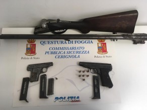 LE ARMI. Il fucile e la prima delle pistole erano state regolarmente denunciate dal suocero defunto di G.C., ma detenute in luogo diverso da quello in cui sono state rinvenute; mentre l’altra pistola non risultava censita nella Banca Dati delle Forze dell’Ordine.
