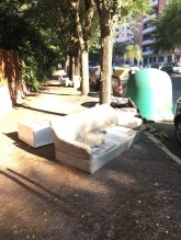 I DIVANI. Il cittadino sottolinea che la zona è nelle vicinanze di importanti uffici come quello del Comune, dell'Università e di Equitalia, e che in questi giorni i cassonetti vengono comunque svuotati dall'Amiu senza però che arrivino invece i mezzi per il recupero dei rifiuti ingombranti.
