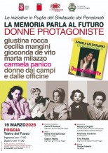 Una serata evento sulle “Donne protagoniste” della storia, ma anche del presente e del futuro, con lo spettacolare, ironico e pungente monologo di Daniela Baldassarra sulle “Donne distorte” da una narrazione al maschile e un focus su Carmela Panico, prima donna dirigente sindacale in provincia di Foggia. Giovedì 19 marzo, dalle ore 17, al Teatro del Fuoco (Vico Cutino 6, Foggia), si svolgerà una serata tutta nel segno delle donne. A organizzarla è lo SPI Cgil Foggia, sindacato delle pensionate e dei pensionati, nell’ambito di un progetto grazie al quale lo SPI Puglia sta attraversando tutta la regione con eventi specificamente dedicati alla battaglia per l’affermazione della parità di genere.
