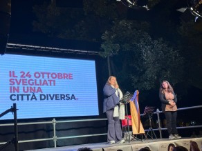 CULTURA E LAVORO. La serata ha vissuto anche di due intermezzi legati a temi capisaldi della candidatura di Maria Aida Episcopo, come Lavoro e Cultura. Sul primo fronte, significativa è stata la testimonianza di Christian Tricarico (delegato FIOM CGIL), uno dei lavoratori licenziati dalla G&W: “La Tozzi in 40 anni ha offerto lavoro e diritti, l’acquisizione da parte degli americani rappresentava per noi una grande opportunità di sviluppo nell’era della transizione ecologica. Ma ci sbagliavamo. Il 18 gennaio è emersa tutta l’ipocrisia di questo gruppo. La Regione Puglia ha fatto la sua parte ma l’azienda ha rispedito tutti al mittente. Grazie al sostegno di questa coalizione stiamo portando avanti la nostra istanza. Stiamo cercando di costituire un comitato che arrivi poi a un Patto territoriale. Se non saremo uniti saremo vittime di noi stessi”. Non da meno il focus sul teatro con Dino La Cecilia, che ha mostrato sul palco il foglio della denuncia alla questura dopo l’episodio del furto al Piccolo Teatro. “Noi non abbiamo paura perché crediamo nella bellezza. Tanta gente che ci è stata vicina, qualcuno voleva anche farci una donazione ma abbiamo detto no perché siamo dei privilegiati. Noi faremo quello che sappiamo fare, spettacolo: e da quello ripartiremo”.