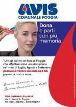 LA CHIAVETTA. Per questo l’Avis di Foggia lancia l’appello a tutti i donatori e propone una iniziativa: nei mesi di luglio, agosto e settembre, tutti gli iscritti all’Avis comunale di Foggia, che effettueranno una donazione presso il Centro Trasfusionale degli OO.RR di Foggia, dal lunedì al sabato (8:15/11) potranno ritirare una USB da 8gb presso la sede in Via N. Sauro, 1.