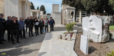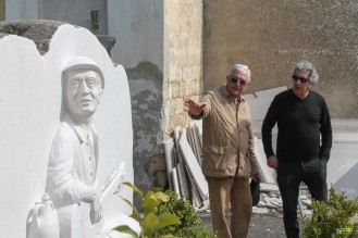 LA VISITA. Il cantautore napoletano, noto per la sua vecchia amicizia con l'artista garganico scomparso nel 2005, ha visitato il monumento funebre eretto nel giugno scorso grazie anche all'impegno del nostro Centro Studi. Accompagnato dall'imprenditore Franco Dell'Erba si è informato sull'opera disegnata dall'architetto Giovanni Carrozzo e realizzata dal maestro scalpellino Antonio Del Campo. A riceverlo il vicesindaco Anna Maria Torelli, l’assessore alla sostenibilità Carla Antonacci e il presidente del consiglio comunale Vincenzo Ferullo.