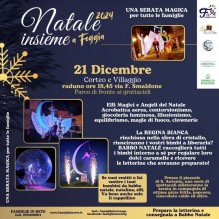 LA FESTA. II 21 dicembre ci sarà una serata con una speciale animazione itinerante con Elfi Magici e Angeli del Natale. Giocoleria luminosa, danze degli Angeli, intrattenimento con trampolieri, sputafuoco ed altri, seguiti da un corteo costituito da tutte le persone che vorranno sfilare, vestiti a tema natalizio, animeranno alcune strade della nostra città. Il raduno è previsto alle ore 18,15 presso il parco di fronte ai grattacieli di via Smaldone. Allietati da musica natalizia si giungerà presso il piazzale della chiesa di Sant'Antonio alle 19,15 circa, dove un Villaggio di Natale farà da sfondo allo spettacolo dei vari artisti, i quali, nelle vesti di elfi magici animeranno la baby dance iniziale con i bambini e realizzano performance di acrobatica aerea su una struttura a forma di grande luna luminosa, contorsionismo, giocoleria luminosa, illusionismo, equilibrismo, magie di fuoco, clownerie, intrattenimento e coinvolgimento del pubblico.