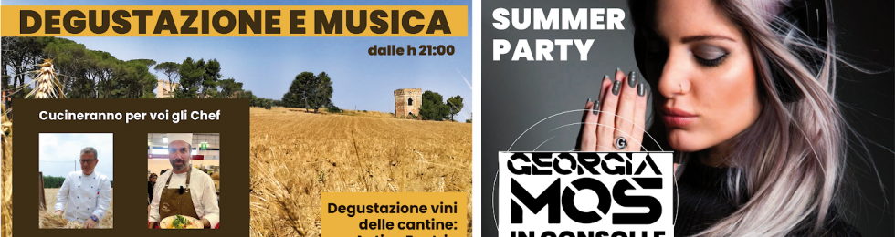 DAL CIBO ALLA MUSICA. Nella splendida cornice di Villa Torre Bianca, sarà possibile degustare i piatti preparati dagli chef Angelo Di Biccari, in arte Trilussa, e Nicola Consiglio, accompagnati dai vini delle cantine Antica Enotria e Kandea. Il tutto con uno spettacolo musicale che accompagnerà la cena, prima di lasciare spazio al Summer Party, discoteca all’aperto per i più giovani con i consolle un nome di grande rilievo: la Dj Georgia Mos, una delle migliori dj e producer in circolazione.