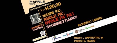 UNA SERATA SPECIALE. Dopo aver promosso un video-spot per incoraggiare la raccolta fondi per l’anfiteatro, Saurino sarà protagonista di "Nzape fa', nvole fa', nvole fa' fa'"?, in programma venerdì 14 aprile alle ore 20.30 nello spazio all’aperto del Centro Polivalente Parcocittà. Si tratta di una serata speciale, aperta alla città, in cui Gianmarco Saurino, il Teatro dei Limoni e il Teatro della Polvere ne leggeranno quattro al pubblico foggiano sul significato profondo di 'senso civico' attraverso una performance teatrale sul tema della legalità.