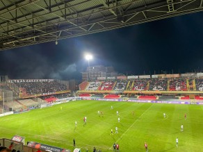 BOTTA E RISPOSTA. Il Foggia parte forte e dopo 2’ trova subito il vantaggio: Garattoni viene steso in area e Petermann è glaciale spiazzando Pane per l’1-0 rossonero. L’Avellino prova subito a reagire e ci riesce alla prima occasione: all’8 Russo è bravo a incunearsi nelle maglie rossonere su calcio di punizione e fa 1-1. La partita è viva e l’Avellino non ci sta a subire andando vicino al vantaggio al 17’ con Casarini che costringe Nobile alla respinta per evitare guai peggiori. Il Foggia però c’è, Ogunseye e Vuthaj si cercano spesso in avanti e Frigerio fa un gran lavoro di “rottura” a centrocampo. La gara si accende soprattutto sugli spalti al momento dell’ingresso dei tifosi avellinesi. Al 31’ il Foggia ha la clamorosa chance per passare: Costa semina il panico sulla tre quarti, sul cross Garattoni si trova al posto giusto ma coglie il palo a portiere battuto. Gli animi sulle curve si scaldano e il fitto lancio di fumogeni e oggetti costringe l’arbitro alla sospensione. Alla ripresa il Foggia protesta per un contatto dubbio in area tra Tito e Garattoni, che l’arbitro lascia correre, mentre poco dopo Pane per poco non la combina grossa non trattenendo una conclusione di Vuthaj. I rossoneri lottano e aggrediscono gli avversari in ogni zona del campo e prima del riposo c’è spazio anche per una deviazione di Di Pasquale su cross di Costa, che finisce però a lato.