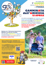 L'INIZIATIVA. “L’evento - scrivono gli organizzatori - si inserisce all’interno del progetto lanciato a settembre dall’Associazione Famiglie in Rete, e che ha come scopo quello di creare una grande Rete di Comunità, mettendo insieme non solo le famiglie ma anche tutti gli altri soggetti sociali presenti sul territorio. La Camminata dell’Amicizia vuole essere un’esperienza di condivisione della bellezza dello stare insieme, ciascuno con la propria diversità ed unicità; vuole promuovere rapporti inclusivi, relazioni autentiche che non nascondono sofferenze, paure e limiti, ma che integrano tutto, nell’abbraccio dell’unica famiglia umana che diventa famiglia per tutti, strumento per vincere l’isolamento e sperimentare la gioia oltre e nonostante tutto. Con questo evento inizia un percorso che vedrà la nascita di altri momenti da vivere insieme, con l’obiettivo di creare armonia, educare lo sguardo alla bellezza che va oltre le ferite e che porti ad accarezzare l’anima che è ciò che forma e informa il corpo. Ringraziamo l'associazione ANFFAS per l'accoglienza e il Filo del Sorriso di Foggia per il supporto e l'esperienza per la buona riuscita dell'iniziativa".