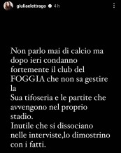 "Finalmente la civiltà", aveva commentato all'arrivo a Perugia, contrapponendo il capoluogo umbro a Foggia. Poi, però, cambiò idea fine anno quando i tifosi - dopo la retrocessione - appesero a un cavalcavia quattro manichini impiccati, tra cui uno che rappresentava Pietro Iemmello. A poche ore dall'aggressione allo Zaccheria, Giulia Elettra Gorietti, compagna dell’attaccante, si è sfogata sui social ed è tornata a parlare (ovviamente male) di Foggia.