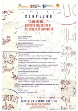 IL CONVEGNO. Al termine della prima annualità, l’equipe di progetto intende fermarsi per provare a leggere e studiare i primi dati raccolti e ragionare su nuove e più efficaci strategie da mettere in campo per lavorare con maggior slancio,soprattutto in un’ottica di rete con le agenzie educative – e non solo – del territorio. Per questo giovedì 30 gennaio, alle ore 17.30, presso la Casa del Giovane “Emmaus” (Viale Candelaro, difronte Parco San Felice) si terrà un convegno che ha proprio come titolo “Dare di più: povertà educative e strategie di comunità”. Dopo i saluti istituzionali, a intervenire saranno i primissimi attori del lavoro che si sta svolgendo con i ragazzi: dal supporto scientifico del pedagogista Roberto Maurizio all’intervento della Dirigente Scolastica dell’Istituto comprensivo “De Amicis – Pio XII” Lucia Rinaldi partner del progetto, dall’equipe di coordinamentodel progetto della Casa Del Giovane ai gruppo di Mecenate90 che si sta occupando di laboratori di teatro e saperi digitali. Uno zoom sul tema minori-territorio, invece, ci sarà dato Alfonsina De Sario Sostituto Commissario della sezione Minori della questura di Foggia, il tutto moderato da Cornelia Hunger coordinatrice del Centro.