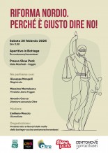 Sabato 28 febbraio, alle ore 11.00, negli spazi della bottega-cucina di “centonove/novantasei” allo Slow Park di Foggia, in viale Manfredi, si terrà il dibattito dal titolo “Riforma Nordio. Perché è giusto dire NO”, organizzato dal Presidio di Libera Foggia “Nicola Ciuffreda e Francesco Marcone”, dal Comitato "Giusto dire No" e dal consorzio di cooperative sociali Oltre.