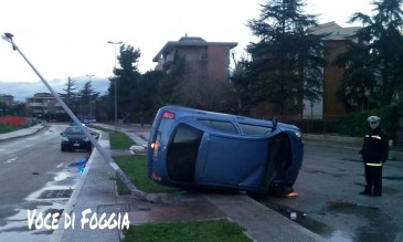 Due auto ribaltate in poche ore a Foggia, per effetto di incidenti stradali e almeno quattro sinistri registrati nell'ultima giornata, con l'intervento della Polizia municipale e di personale del 118.