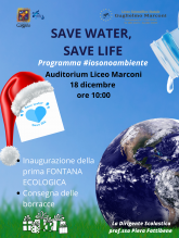 Con “Save water, save life” sono state acquistate anche borracce ecologiche per tutti gli studenti del Liceo Marconi e saranno distribuite nella mattinata del 18 dicembre.