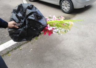lasciato sul tergicristalli della propria auto e un mazzo di fiori.