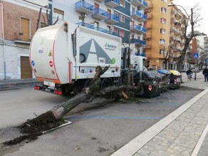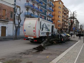 Via Matteotti, mezzo AMIU abbatte albero nei pressi della scuola Parisi-DeSanctis