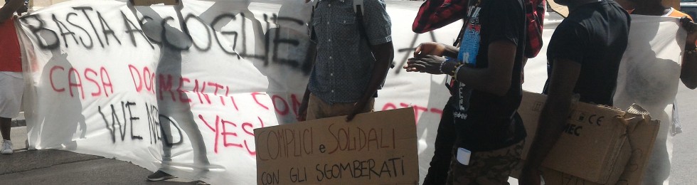 CONTRATTI, DOCUMENTI, ALLOGGI. All’accoglienza “classica”, in sostanza, sempre più indigesta e difficoltosa tanto ai migranti che alle istituzioni nazionali e locali, i manifestanti propongono la via della legalità, chiedendo contratti, documenti e alloggi. Una richiesta che, come espresso attraverso alcuni striscioni, trova complicità e solidarietà con le drammatiche situazioni che hanno riguardato, nei giorni scorsi, i migranti sfollati con la forza nelle città di Roma e San Ferdinando (Calabria). Ad attestarlo, infine, lo striscione più in vista del sit-in, recante il seguente messaggio: “Complici e solidali con gli sgomberati di Roma e San Ferdinando”.
