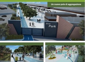 COS'È SLOW PARK. L'idea progettuale ruota intorno al cibo e al concetto di lentezza. Il parco sarà realizzato su una superficie di 7.435 mq di proprietà comunale, recuperando un'area ferrovia dismessa. È prevista un'area food: sarà una vetrina dei prodotti a km 0 di qualità. Slow Park sarà aperto alle bici e connesso con l'area di scambio del trasporto ferro/gomma, sintesi della mobilità lenta e sostenibile. All'interno del parco sarà presente una ciclofficina. Il tempo stimato di realizzazione è di 18 mesi.