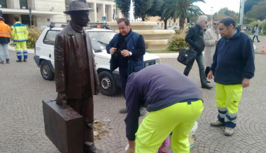 E' tornata nella sua “sede”, sul piazzale della stazione di Foggia, la statua del "Viaggiatore". Più volte vandalizzata in passato, l'opera realizzata dallo scultore Leonardo Scarinzi aveva subìto un altro danno la sera dell'11 gennaio scorso, quando tre teppisti (poi identificati, grazie alle telecamere della piazza, dalla Polizia Municipale) avevano sfondato la statua all'altezza della schiena.