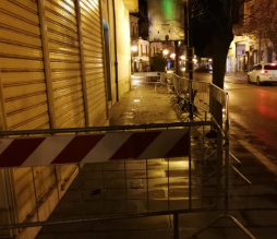 L’intervento dei vigili del fuoco per la messa in sicurezza e transenne per la ‘chiusura’ di quel tratto di marciapiede.