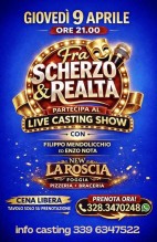 Giovedì 9 aprile alle ore 21.00 presso la pizzeria braceria New La Roscia ci sarà la serata “Fra scherzo & realtà”, un live casting show gratuito organizzato da Filippo Mendolicchio e Enzo Nota.