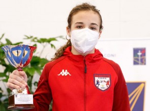 I RISULTATI. Protagoniste di un’ottima fase a gironi, chiusa rispettivamente al primo e al secondo posto, Buenza e Bentivoglio sono state esentate dal primo turno della diretta e sono quindi entrate in tabellone all’altezza degli ottavi di finale: Buenza ha sconfitto 10-1 Anna Sepe del Champ Napoli e Bentivoglio ha superato per 10-6 Marta Meroni della Scherma Verbania. Doppia affermazione anche nei quarti di finale, con Buenza che si è imposta ancora per 10-1 a spese di Eleonora Silvestri del Posillipo Napoli e Bentivoglio che ha avuto la meglio sulla compagna di club Alice Coco col punteggio di 10-8. In semifinale Buenza ha battuto Matilde Reale del Frascati Scherma per 10-7 mentre Bentivoglio si è arresa per 10-4 ad Anna Torre della Fides Livorno, a sua volta impostasi in finale su Leonilde Buenza per 10-7. A premio anche l’altra sanseverese Alice Coco, settima classificata.