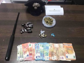 I CONTROLLI. Durante la perquisizione personale, i militari hanno trovato addosso all'uomo un manganello telescopico, un discreto quantitativo di droga suddiviso in 116 grammi circa di hashish, 26 di marijuana e 3 di cocaina, oltre a denaro contante per 1.050 euro, sulla cui provenienza il 26enne, disoccupato, non ha potuto a fornire alcuna valida spiegazione.