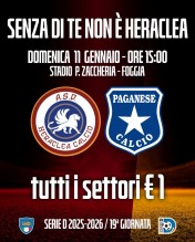 Il campionato dell'Heraclea è arrivato ad un punto molto delicato, la squadra dei presidente Casillo e De Vitto aveva perso 6 partite consecutive prima di vincere in trasferta sul campo del Real Normanna. Nei giorni scorsi è arrivato il nuovo Direttore Sportivo Riccardo di Bari e ci saranno parecchi movimenti di calciomercato. Domenica allo Zaccheria c'è la partita contro la Paganese e la società ha chiamato a raccolta tutti i tifosi decidendo di vendere i biglietti a partire da 1 euro più 50 centesimi per le commissioni.