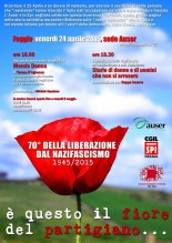 Due appuntamenti all'Auser in occasione del 70° anniversario della Liberazione dal Nazifascismo. L'inaugurazione di una mostra fotografica che si terrà venerdì 24 aprile alle ore 18,00 presso il saloncino dell'associazione (Via della Repubblica 72) e a seguire un incontro sulla resistenza con Geppe Inserra.