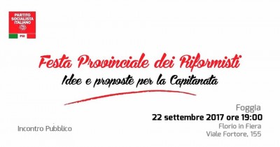 Venerdì 22 settembre a partire dalle ore 19 presso il ristorante Florio in Fiera ci sarà la festa provinciale dei Riformisti.